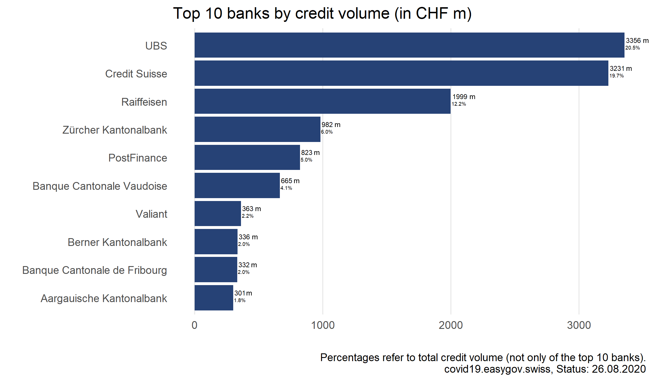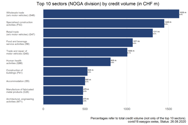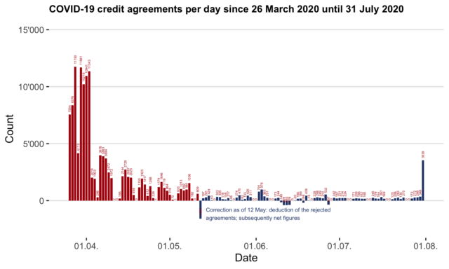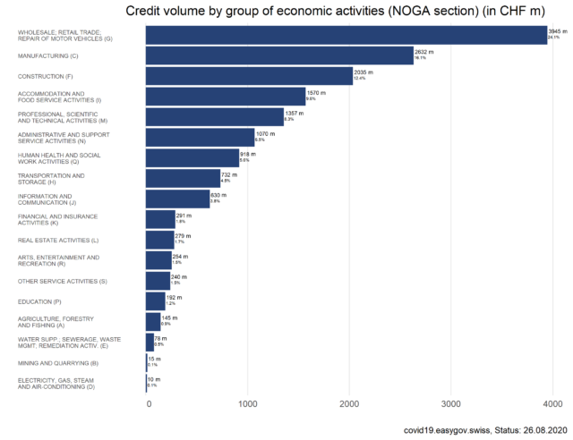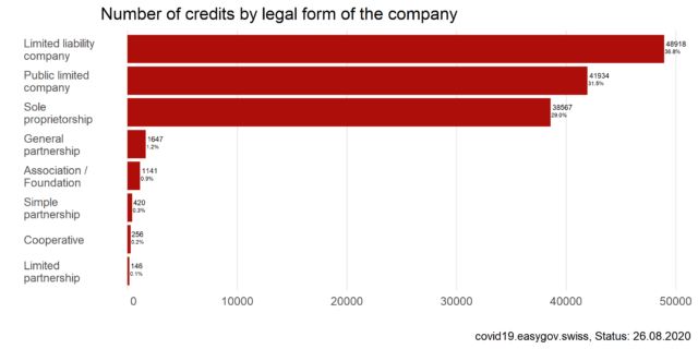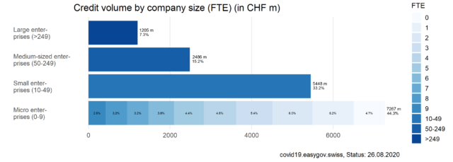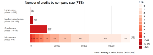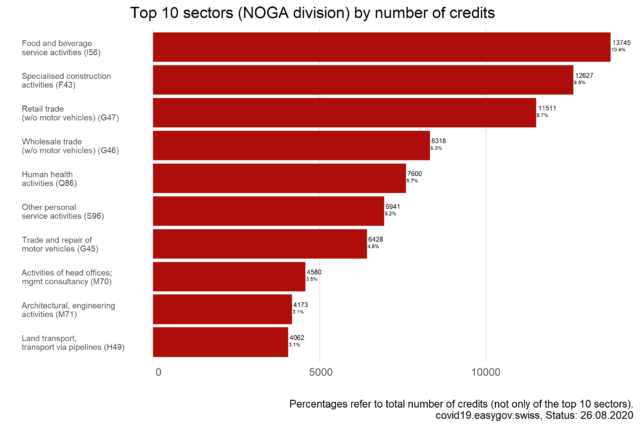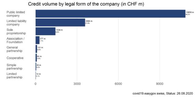On this page, you will find information and data about Covid-19 credits for companies. To ensure liquidity, companies affected by the Covid-19 crisis were eligible to apply for bridging credits guaranteed by the federal government between March 26th 2020 and July 31st 2020.