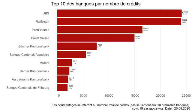 ** Ces chiffres se basent sur la totalité du montant du crédit et non seulement sur les 85% garantis par la Confédération.