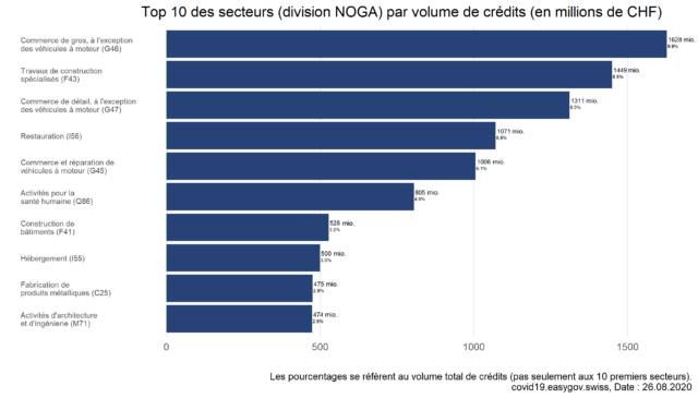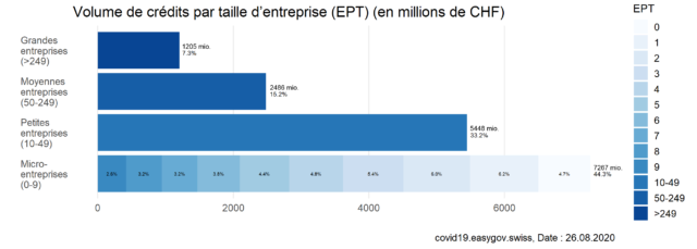 Sur cette page, vous trouverez des informations et des données relatives aux crédits Covid-19 pour les entreprises. Afin d’assurer leur liquidité, les entreprises touchées par la crise du Covid-19 ont pu demander des crédits transitoires garantis par la Confédération entre le 26 mars 2020 et le 31 juillet 2020.