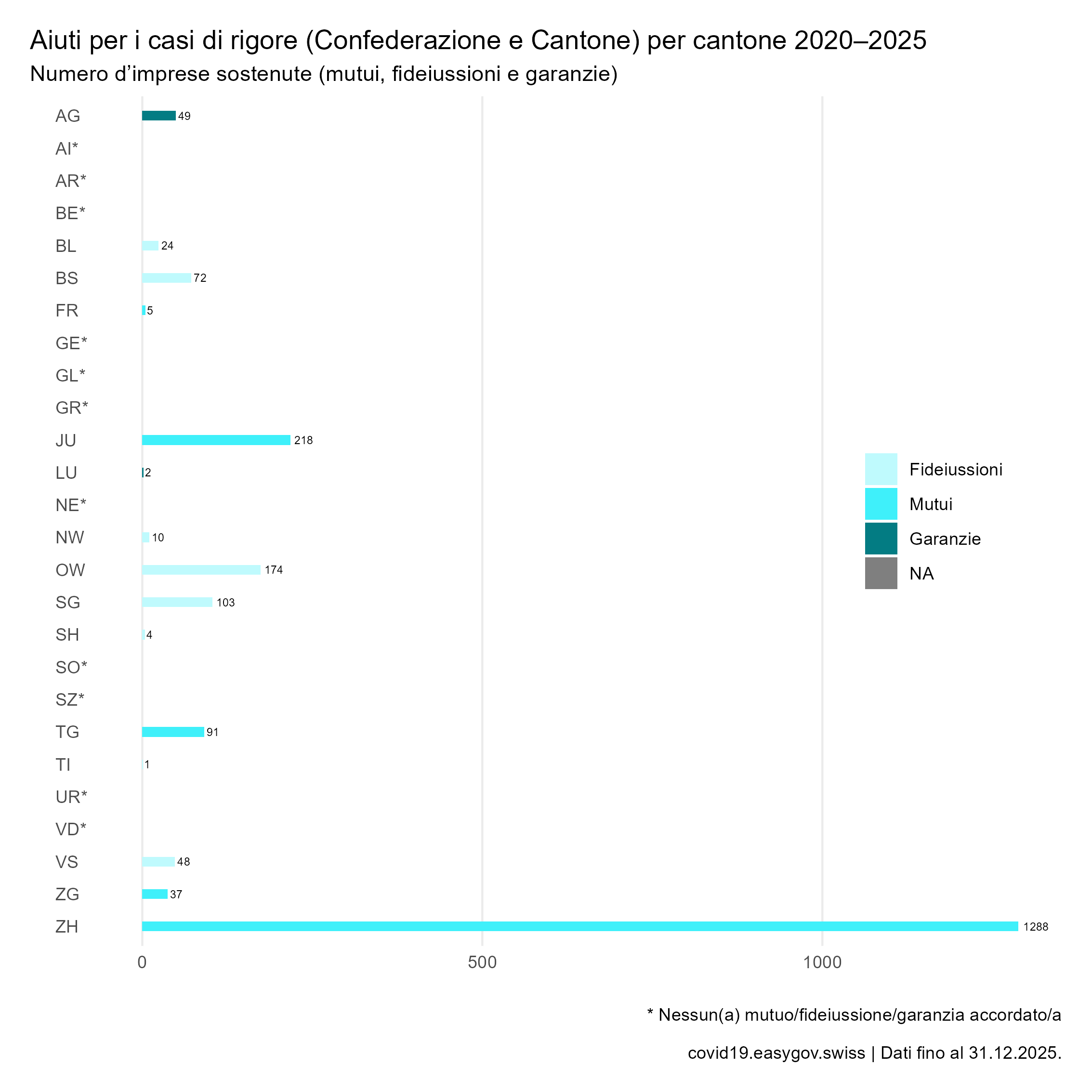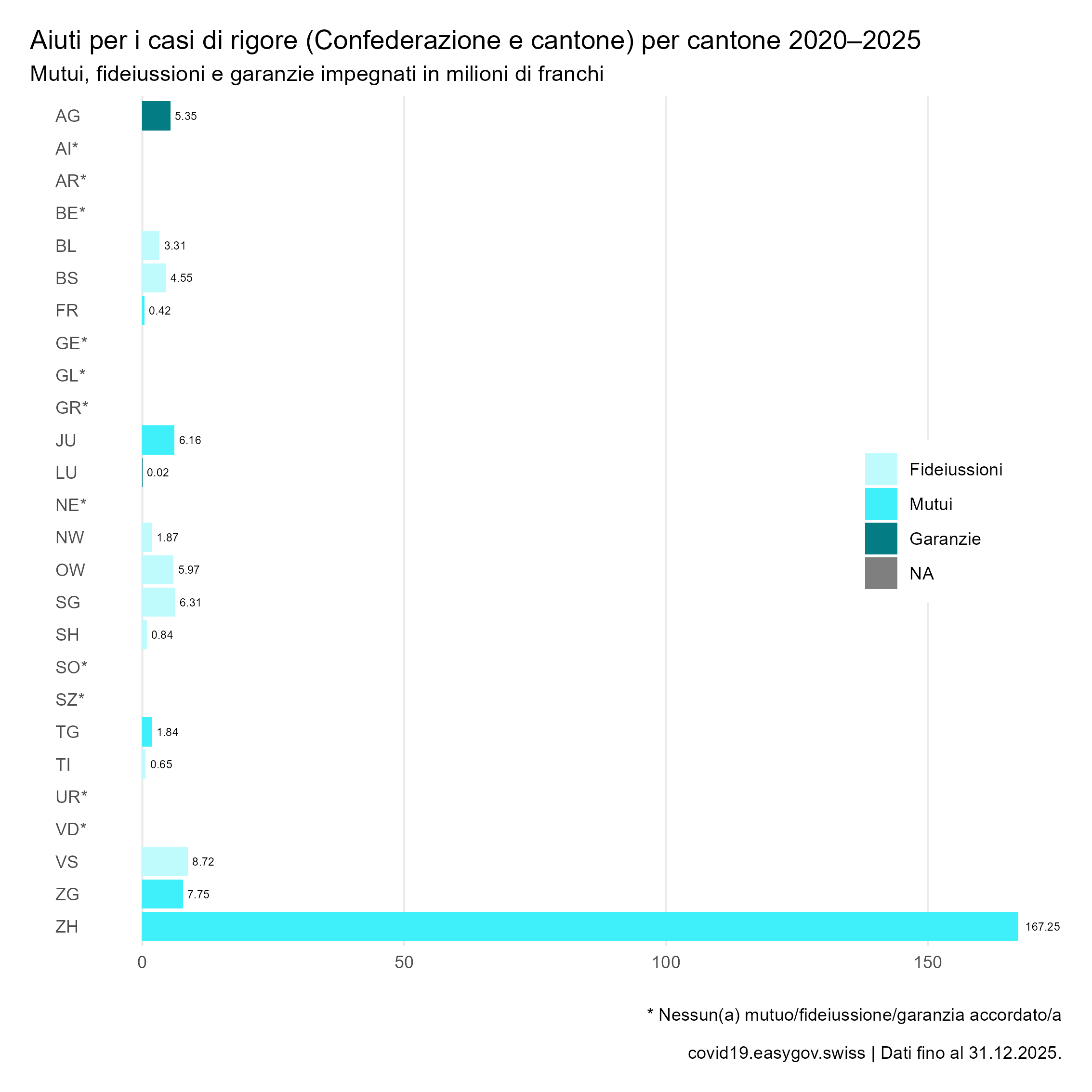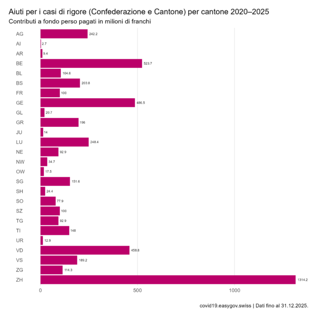 | Aiuti pagati o impegnati dai cantoni tra il 01.03.2020 e il 31.12.2025 per i casi di rigore |